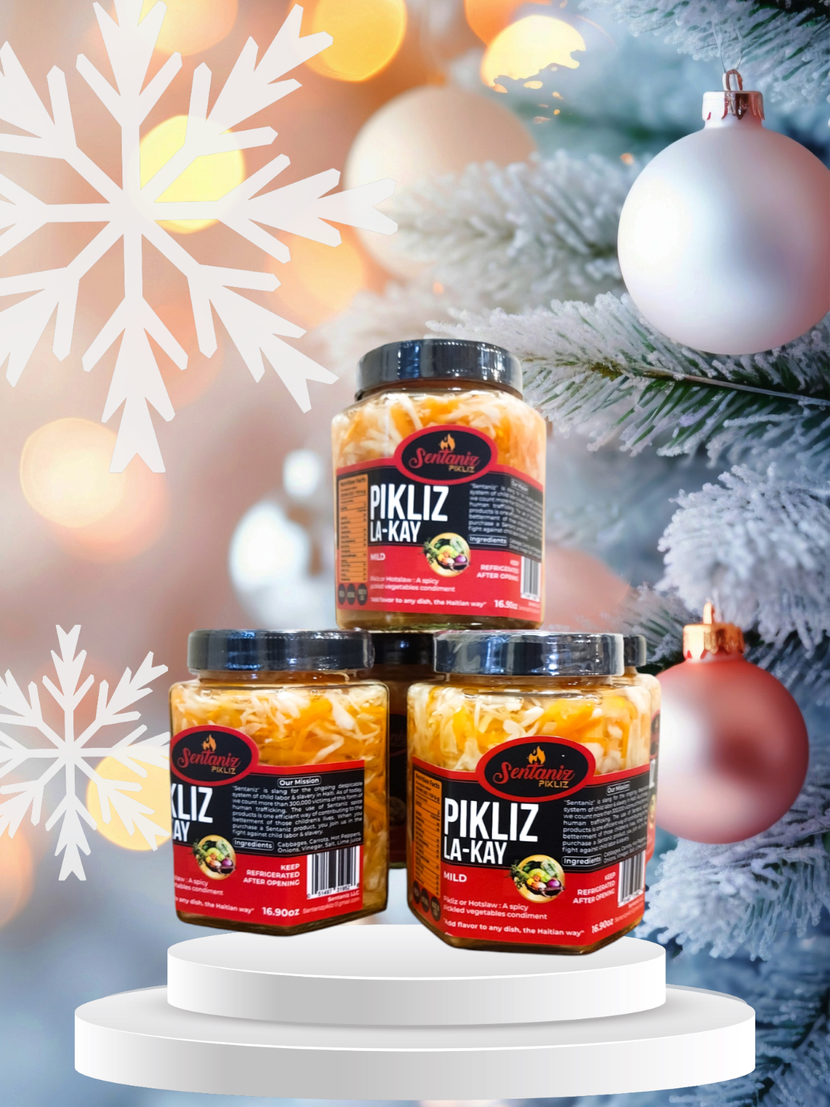 This Christmas, spice up your holiday meals with the bold and flavorful Sentaniz Pikliz! Made with fresh, fermented ingredients like cabbage, carrots, onions, and Scotch pepper, it’s the perfect addition to any dish.